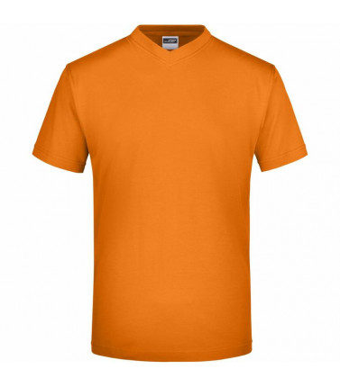 t-shirt comfort in single jersey, collo a v con elastan. senza cuciture laterali, necktape. cuciture doppie sulle spalle, sullo scollo e sul giromanica. tessuto esterno (150 g/mâ²): 100% cotone. manica corta, senza cuciture laterali.