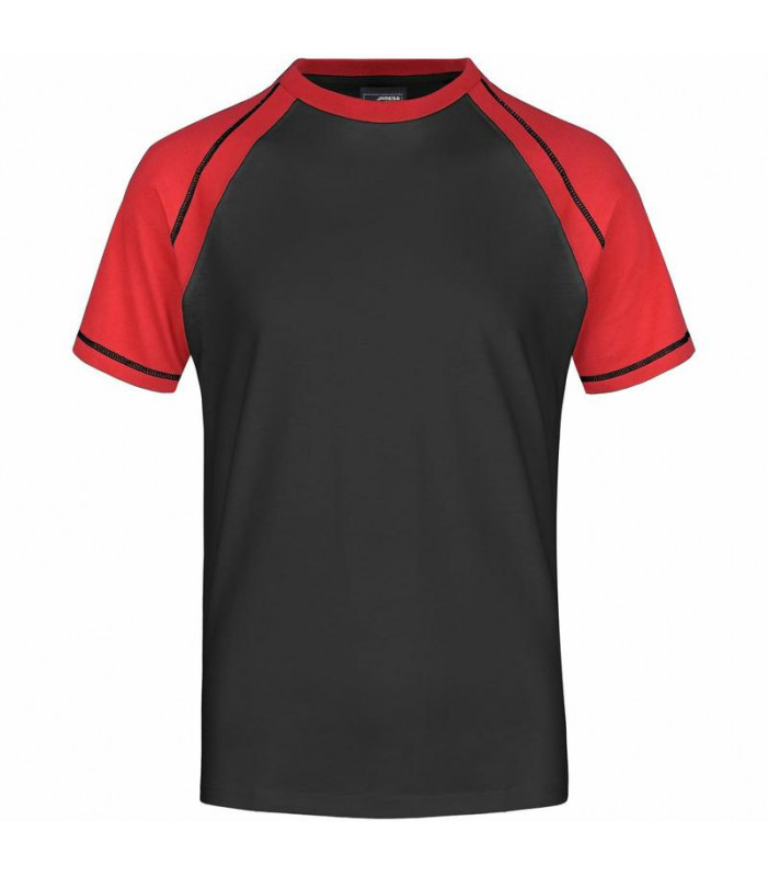t-shirt in design sportivo bicolore, single-jersey di alta qualitã , maniche raglan e girocollo con colori a contrasto,doppie cuciture e cuciture flatlock sulle maniche, necktape.jn011: taglio femminile.tessuto esterno (160 g/mâ²): 100% cotone.manica corta,policromo,raglan. collo rotondo
