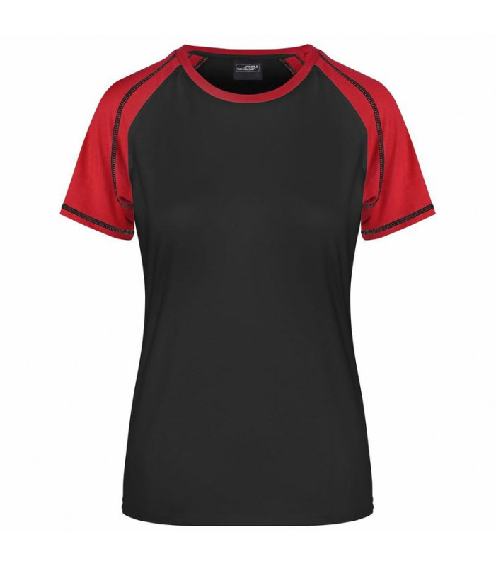t-shirt in design sportivo bicolore.single-jersey di alta qualitã . maniche raglan e girocollo con colori a contrasto. doppie cuciture e cuciture flatlock sulle maniche. necktape. tessuto esterno (160 g/mâ²): 100% cotone. manica corta, donna, policromo, collo rotondo, taglio sciancrato