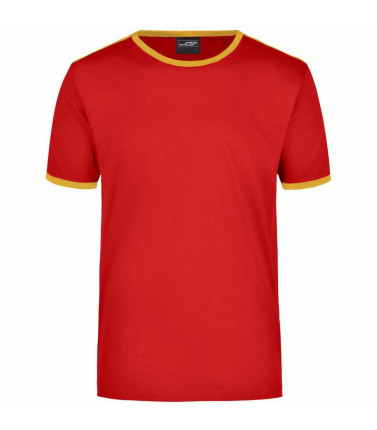 t-shirt con fasce a contrasto,single-jersey di alta qualitã . girocollo e giromanica con colori a contrasto. fasce a contrasto su maniche e spalle. jn018: taglio femminile. tessuto esterno (160 g/mâ²): 100% cotone.manica corta,policromo, collo rotondo