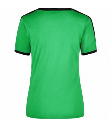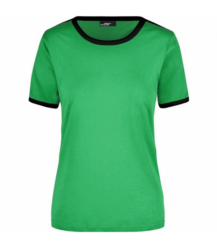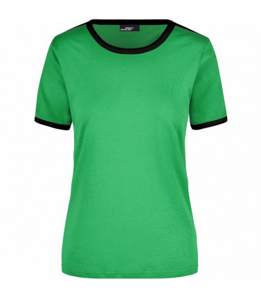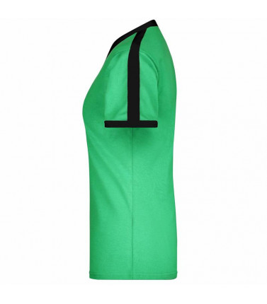 t-shirt con fasce a contrasto. single-jersey di alta qualitã . girocollo e giromanica con colori a contrasto. fasce a contrasto su maniche e spalle. tessuto esterno (160 g/mâ²): 100% cotone. manica corta, donna, policromo. collo rotondo, taglio sciancrato.
