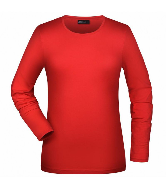shirt aderenti con elastan, single elastic di facile manutenzione, cuciture laterali, scollo rotondo con bordino stretto, tessuto esterno (200 g/mâ²): 95% cotone, 5% elastan,manica lunga, slimfit, taglio sciancrato