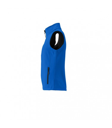 gilet softshell stampabile adatto al promozionale e al tempo libero, gradevole softshell a due strati, idrorepellente, antivento, traspirante, lato interno in morbido micropile, zip anteriore a tutta lunghezza, nascosta e riflettente con protezione per il mento, 2 tasche laterali con cerniera, 2 tasche interne, sciancrata, 100% poliestere, colletto alla coreana, antivento e idrofugo