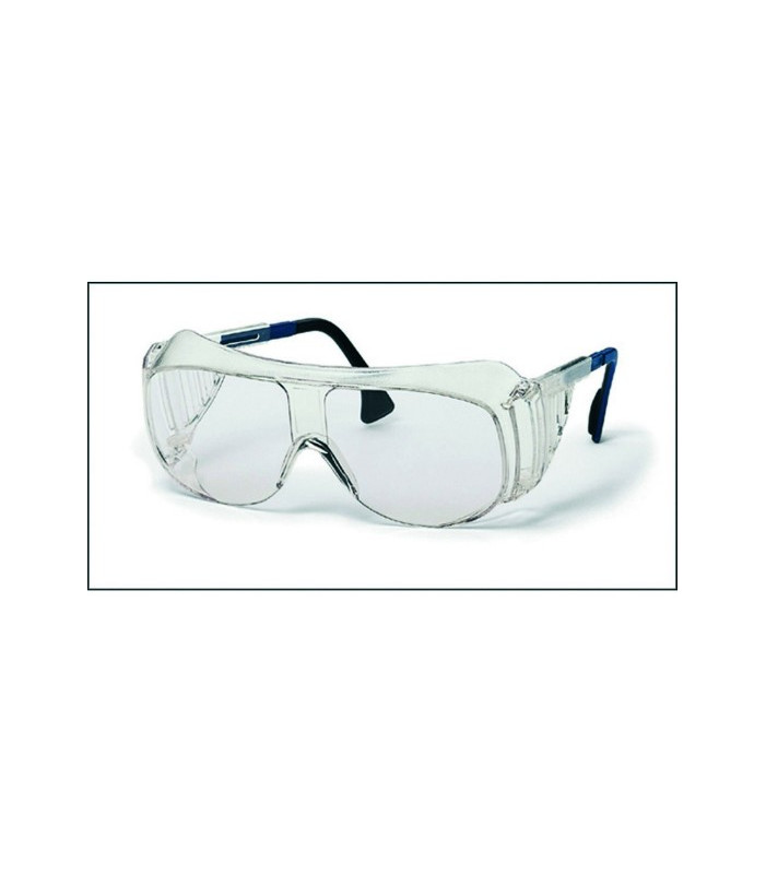 Occhiale adatto anche per essere indossato sopra qualsiasi occhiale correttivo, ampio campo visivo grazie alle lente panoramica chiara estremamente resistente ai graffi e agli agenti chimici, sistema di ventilazione laterale integrato, parte superiore della montatura opacizzata per evitare infiltrazioni di luce diretta, stanghette duo-flex e relativa regolazione della lunghezza in 3 posizioni con fermo automatico