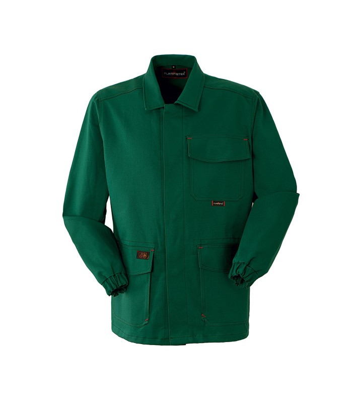 *descrizione modello a magazzino colore 04 in esaurimento* taglie italiane chiusura con bottoni coperti, collo chiuso, due tasche e un taschino applicati chiusi con aletta e velcro, elastico al fondo manica *descrizione nuovo modello colore 51 in arrivo a settembre* taglie americane chiusura anteriore con bottoni automatici coperti, collo a camicia, 1 taschino applicato al petto sinistro chiuso con aletta e velcro, 2 tasche inferiori applicate chiuse con aletta e velcro con soffietto laterale interno, polsi al fondo manica con elastico, travettature varie di colore rosso a contrasto, etichetta jacquard con pittogrammi cucita su aletta tasca inferiore destra drill 3/1, 100% cotone ignifugo con trattamento fr proban, peso 335 g/m2