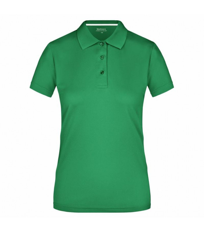 t-shirt polo altamente funzionale (micropoliestere) poliestere, donna, protezione uv 25, traspirante, regola l'umiditã e ad asciugatura rapida, colletto polo in maglia, necktape, bottoni tono su tono, leggermente sciancrata. tessuto esterno (170 g/mâ²): 100% poliestere , manica corta, spacchetti laterali, sport