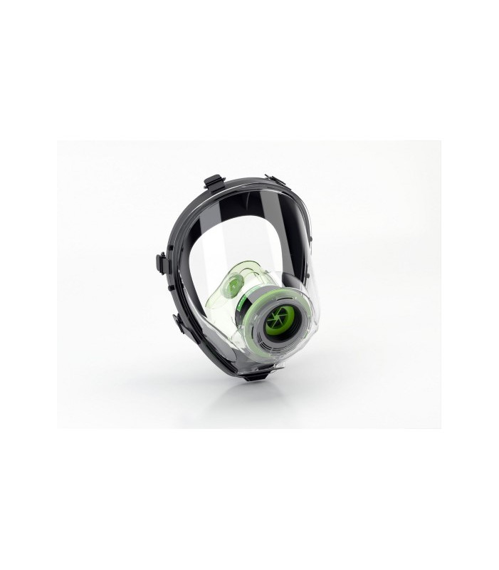 Maschera a pieno facciale monofiltro di taglia universale, guarnizione esterna in gomma sintetica, bardatura regolabile a sgancio rapido a sei punti di attacco, schermo panoramico, oronasale dotato di due valvole di inspirazione per evitare appannamenti, l'attacco per il filtro è filettato secondo la norma en148/1 per essere utilizzato con tutti i dispositivi dotati di raccordo maschio
