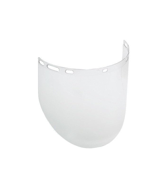 Visiera neutra in policarbonato mm 395x240x2, schermo iniettato, protezione contro radiazione uv, gocce e spruzzi, impatti meccanici, metalli fusi e solidi incandescenti, arco elettrico da corto circuito, graffi superficiali (marcatura k), certificata con i simboli per il campo di utilizzo 8 e 9 della en166 per protezione arco elettrico e proiezioni di metallo fuso, resistente ad impatti e a temperature estreme. in abbinamento con r710.
