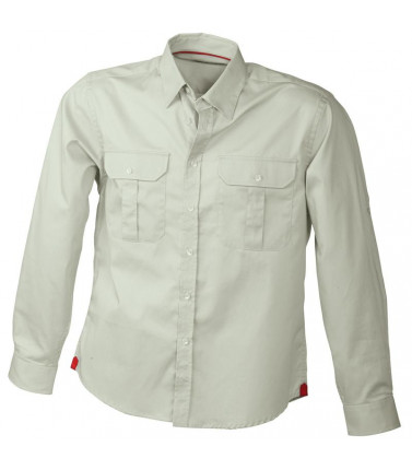 camicia outdoor per il lavoro ed il tempo libero tessuto twill a stiratura facile con finissaggio easy-care , 2 taschini, maniche roll-up-con fettuccia per fissare, doppie cuciture robuste, bottoni tono su tono, colletto kent, pence sulla schiena. 100% cotone, manica lunga, pence sulla schiena