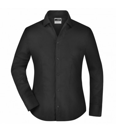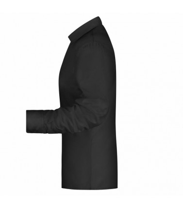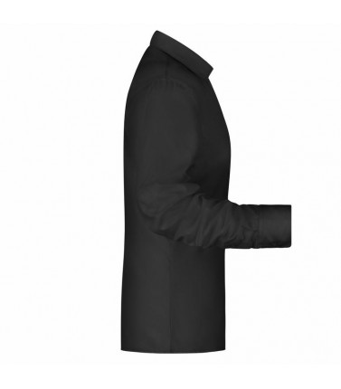 camicia di facile stiratura tessuto twill con finissaggio easy-care, colletto aperto. taglio sciancrato con orlo arrotondao, tessuto esterno 100% cotone, donna, manica lunga