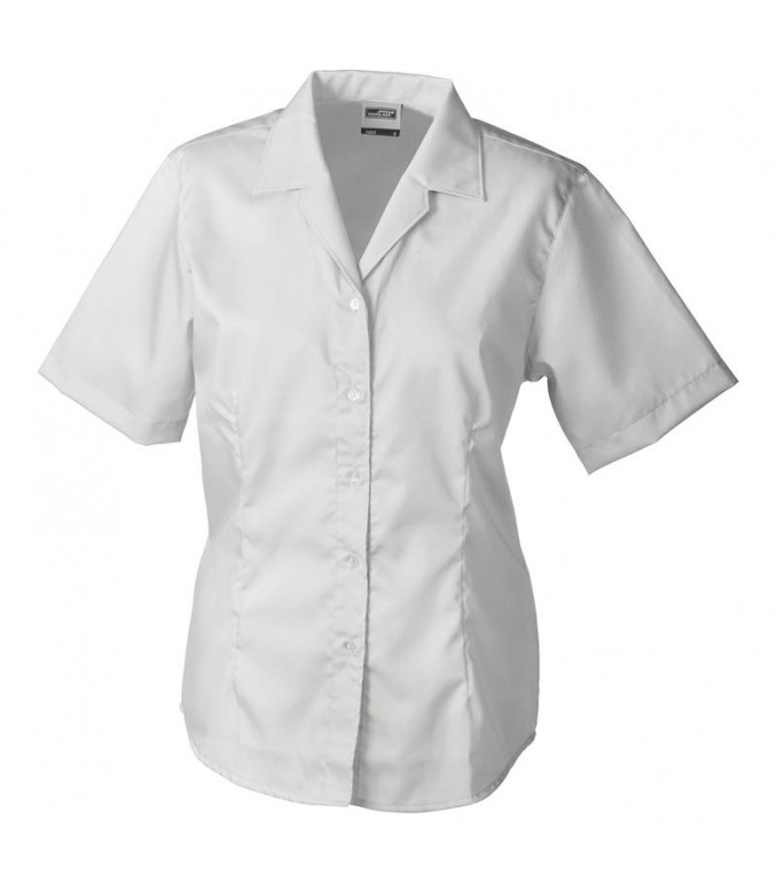 camicia di facile stiratura tessuto twill con finissaggio easy-care, colletto aperto, taglio sciancrato con orlo arrotondato. 100% cotone, manica corta, donna
