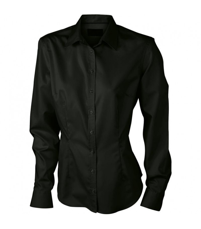 -sulle spalle, classica forma femminile grazie alle cuciture a freccetta sul seno e sulla schiena. orlo stondato, bottoni ricoperti, 1 bottone al polsino. 100% cotone, donna, manica lunga, pence sulla schiena, taglio sciancrato