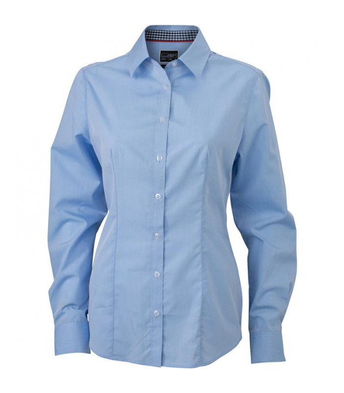 camicia a maniche lunghe donna, tessuto esterno: (100 g/m²): 100% cotone, parte interna del colletto e dei polsini con disegno a quadratini in contrasto, leggermente avvitata, taglio femminile
