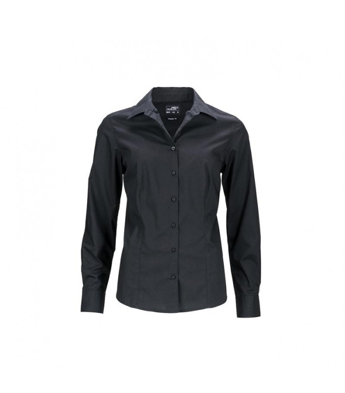 camicia classica con mix di tessuti durevoli camicetta popline facile da trattare, orlo arrotondato, lavabile a 60 â° c, sagomata , taglio sciancrato femminile. 50% cotone, 50% poliestere, easy care, manica lunga, pence sulla schiena, taglia donne 3xl