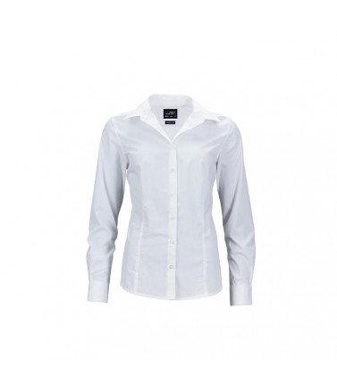 camicia classica con mix di tessuti durevoli camicetta popline facile da trattare, orlo arrotondato, lavabile a 60 â° c, sagomata , taglio sciancrato femminile. 50% cotone, 50% poliestere, easy care, manica lunga, pence sulla schiena, taglia donne 3xl
