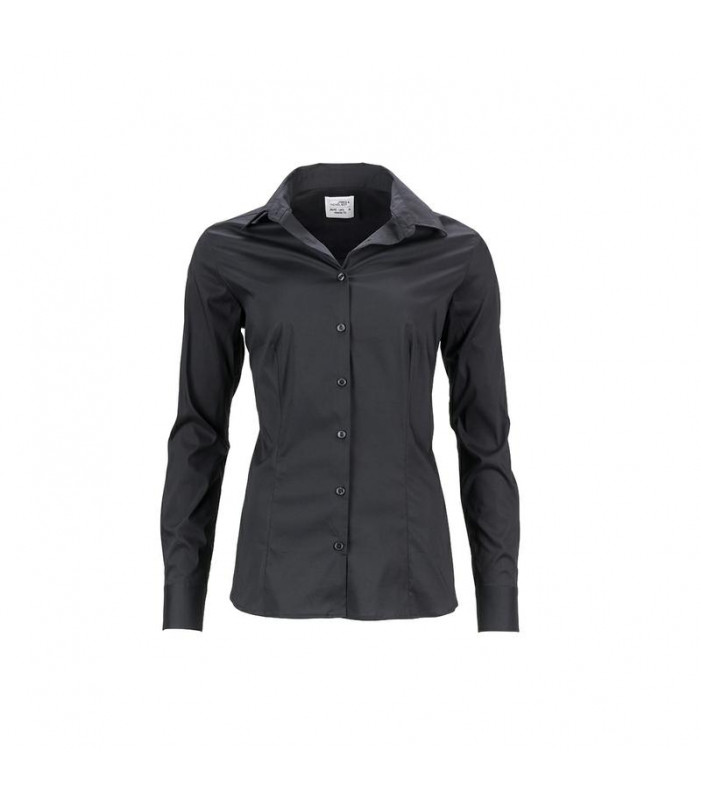 camicetta attillata in vita, alla moda camicia elasticizzata, popline, facile da trattare, morbido colletto, slim- fit con balze davanti e dietro. 67% cotone, 30% poliammide, 3% elastan , easy care, donna, manica lunga