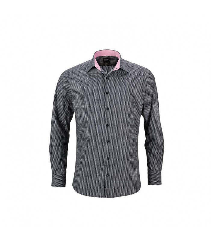 -con stampa all-over in micro-fantasia. cotone popeline di alta qualità facile da stirare. bottoni in colore a contrasto, orlo arrotondato. taglio classico leggermente sfiancato, pince sul retro. 100 g/m²