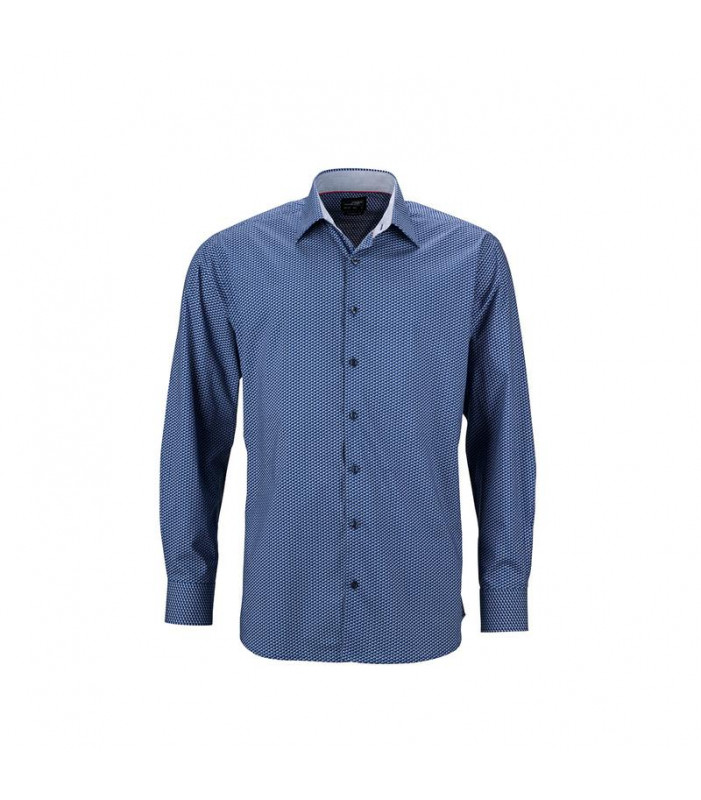 -con stampa all-over in micro-fantasia. cotone popeline di alta qualità facile da stirare. bottoni in colore a contrasto, orlo arrotondato. taglio classico leggermente sfiancato, pince sul retro. 100 g/m²