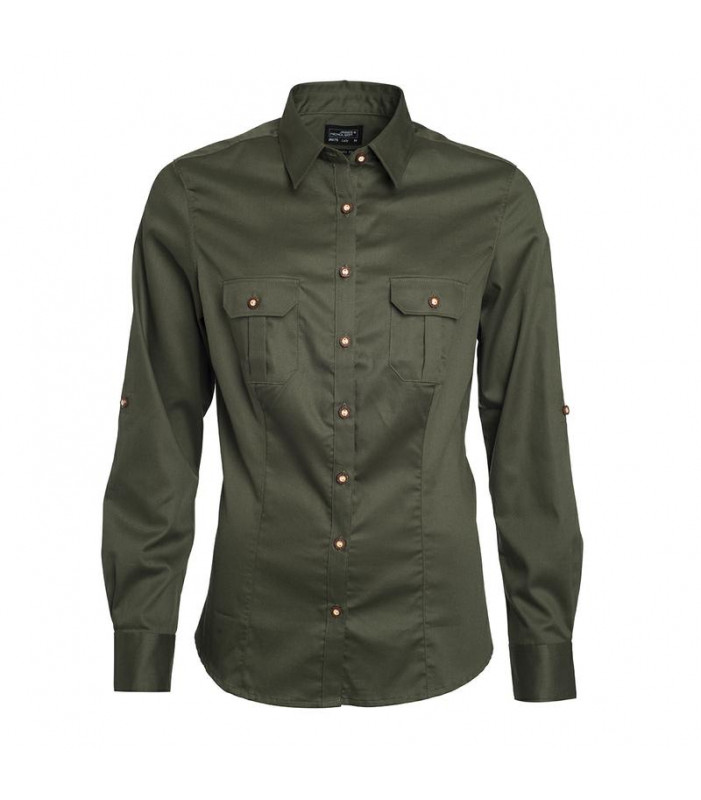 twill di cotone, facile da stirare con finitura easy-care, manica rimboccabile con linguetta e bottone, doppio taschino sul petto, bottoni da costume tradizionale a imitazione del corno, taglio femminile. jn676: vestibilitã classica