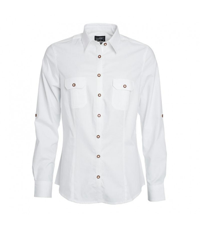 twill di cotone, facile da stirare con finitura easy-care, manica rimboccabile con linguetta e bottone, doppio taschino sul petto, bottoni da costume tradizionale a imitazione del corno, taglio femminile. jn676: vestibilitã classica