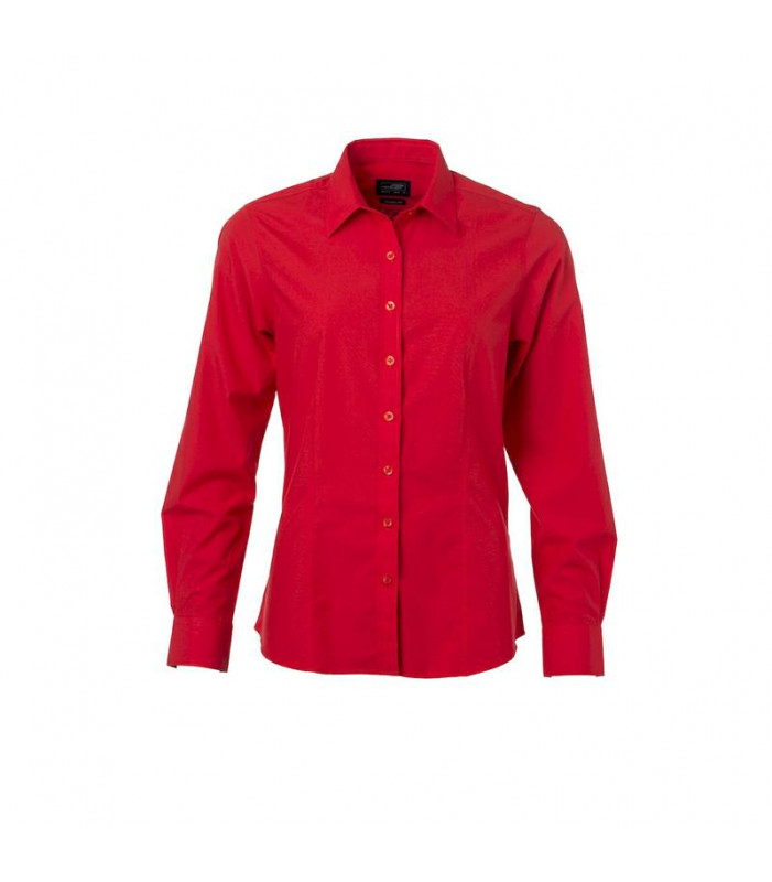 65% poliestere, 35% cotone. camicia poplin easy care, con orlo arrotondato, taglio femminile leggermente sfiancato ai lati.