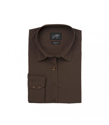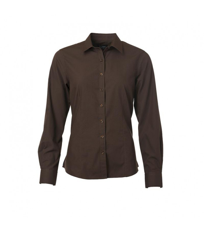 65% poliestere, 35% cotone. camicia poplin easy care, con orlo arrotondato, taglio femminile leggermente sfiancato ai lati.