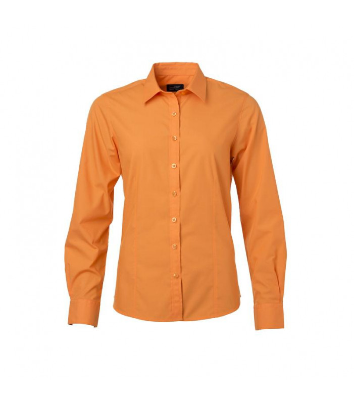 65% poliestere, 35% cotone. camicia poplin easy care, con orlo arrotondato, taglio femminile leggermente sfiancato ai lati.