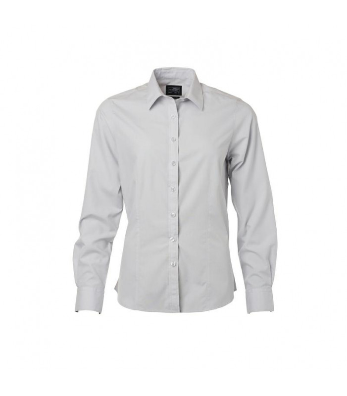 65% poliestere, 35% cotone. camicia poplin easy care, con orlo arrotondato, taglio femminile leggermente sfiancato ai lati.