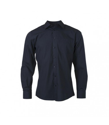 65% poliestere, 35% cotone. camicia poplin easy care con orlo arrotondato, bottoni, taglio classico leggermente avvitato e taschino lato cuore.