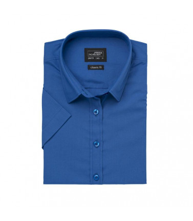 camicia classica con tessuti misti easy care. poplin easy care. tessuto esterno (105 g/mâ²): 65% poliestere, 35% cotone, orlo arrotondato, taglio femminile avvitato, pieghe sul retro.
