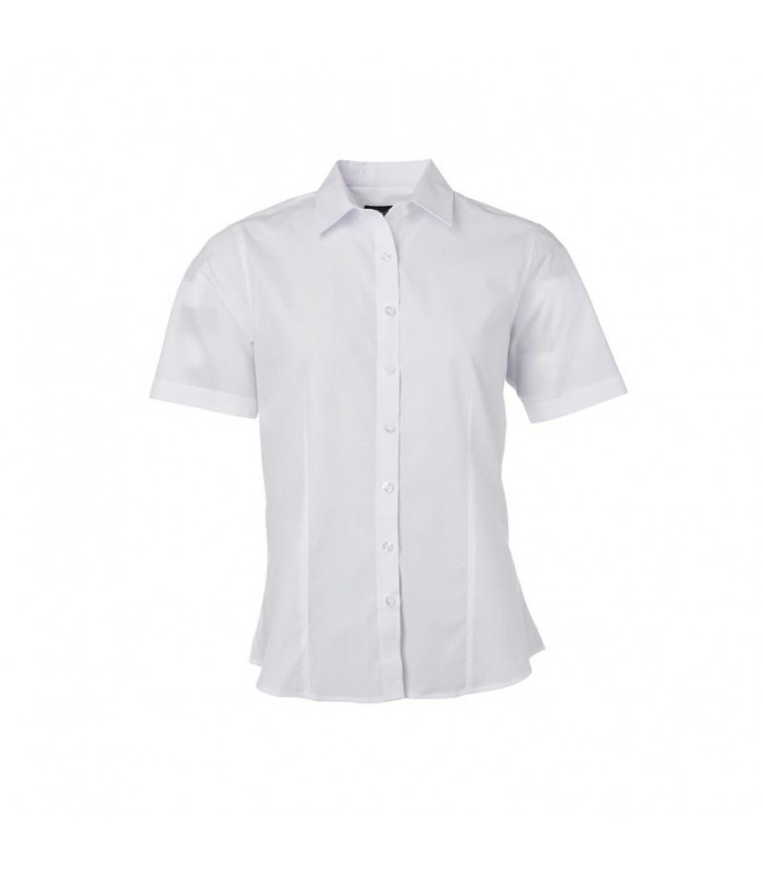 camicia classica con tessuti misti easy care. poplin easy care. tessuto esterno (105 g/mâ²): 65% poliestere, 35% cotone, orlo arrotondato, taglio femminile avvitato, pieghe sul retro.