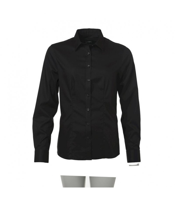 100% cotone. camicia con micro-twill, orlo arrotondato, taglio femminile leggermente sfiancato.