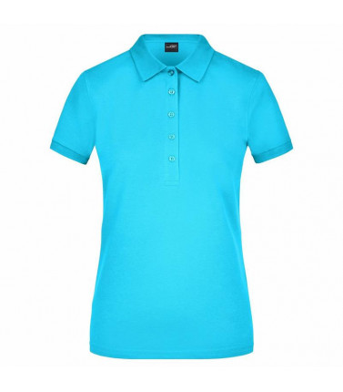 polo classica in pique elasticizzato colletto polo e bordini manica smacchinati, spacchetti laterali, 5 bottoni, svasata, tessuto esterno (210 g/mâ²): 95% cotone, 5% elastan, manica corta, donna