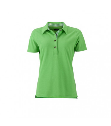 polo classica nel costume tradizionale ottimo tessuto piquã¨-collo dritto, l'interno del abbottonatura e nelle laterali fessure motivo a quadri, bottoni in costume tradizionale fatti con materiale d'imitazione corno, mezza luna tono su tono, colletto, 4 bottoni, avvitata tessuto esterno (195 g/mâ²): 100% cotone, manica corta, donna, policromo