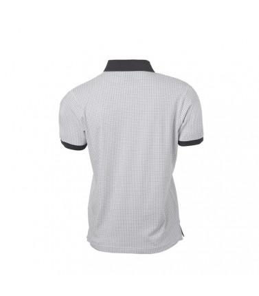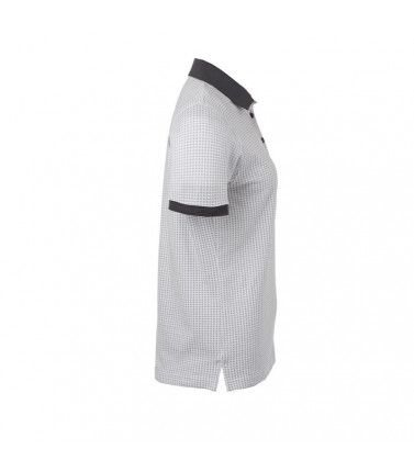 95% cotone, 5% elastan, single jersey. polo a maniche corte set-in. colletto e polsini monocromatici, 5 bottoni tono su tono, struttura con cuciture e spacchetti laterali, leggermente sfiancata.