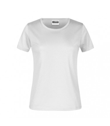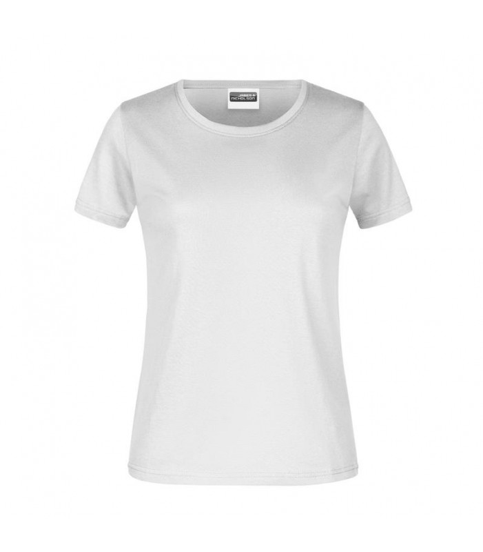 100% cotone, single jersey. t-shirt girocollo da donna con elastico al collo in elastane, leggermente sfiancata, etichetta removibile.