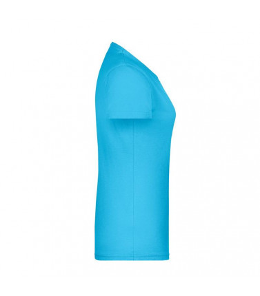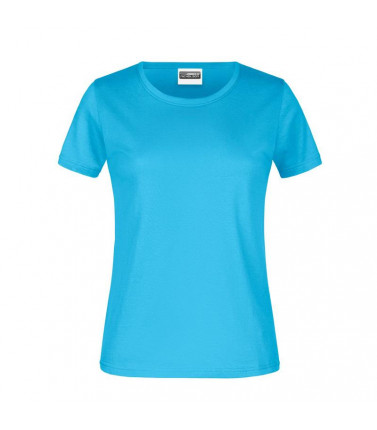 100% cotone, single jersey. t-shirt girocollo da donna con elastico al collo in elastane, leggermente sfiancata, etichetta removibile.