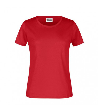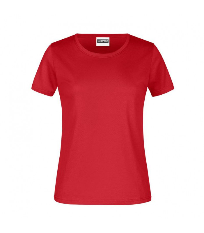100% cotone, single jersey. t-shirt girocollo da donna con elastico al collo in elastane, leggermente sfiancata, etichetta removibile.