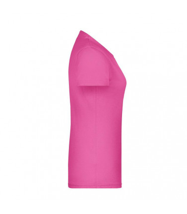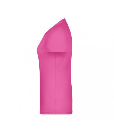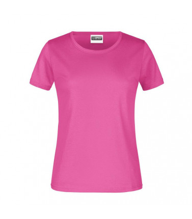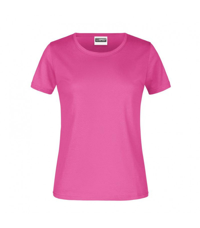 100% cotone, single jersey. t-shirt girocollo da donna con elastico al collo in elastane, leggermente sfiancata, etichetta removibile.