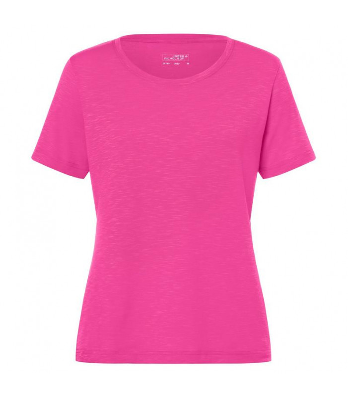 95% poliestere, 5% elastan. t-shirt slub, girocollo, single-jersey elastico, traspirante e con regolazione dell'umiditã , ad asciugatura rapida, con nastro di rinforzo al collo, leggermente sfiancata.