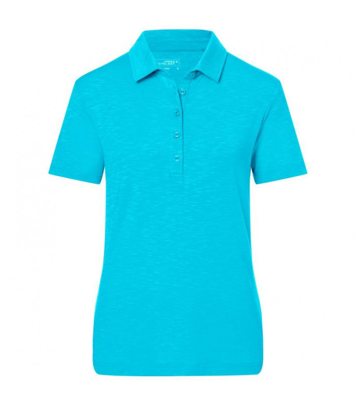 95% poliestere, 5% elastan. polo slub in single jersey elastico, traspirante e con regolazione dell'umiditã , ad asciugatura rapida, colletto alto, nastro di rinforzo al collo, 5 bottoni, leggermente sfiancata.