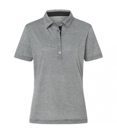 100% poliestere. polo bicolore in jersey con motivo a righe, traspirante, regolazione dell'umiditã e ad asciugatura rapida. parte interna del colletto e bottoni di colore contrastante. colletto alto, 5 bottoni, leggermente sfiancata.