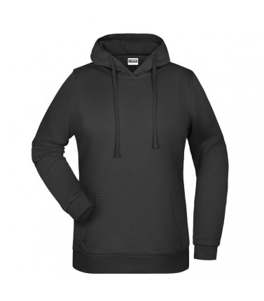 80% cotone, 20% poliestere. felpa da donna con rivestimento interno, cappuccio doppio strato con coulisse, tasca a canguro, necktape, bande nelle maniche in elastane, etichetta removibile, leggermente sfiancata.