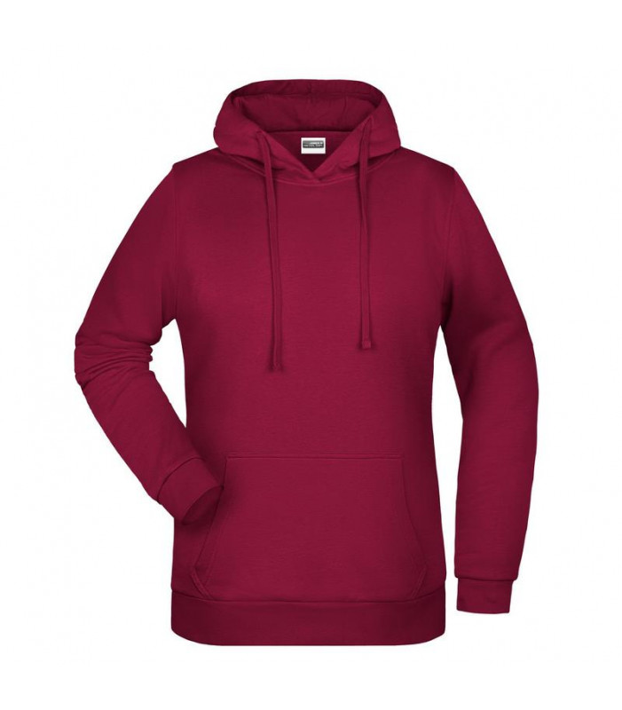 80% cotone, 20% poliestere. felpa da donna con rivestimento interno, cappuccio doppio strato con coulisse, tasca a canguro, necktape, bande nelle maniche in elastane, etichetta removibile, leggermente sfiancata.