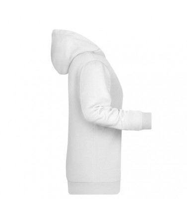 80% cotone, 20% poliestere. felpa da donna con rivestimento interno, cappuccio doppio strato con coulisse, tasca a canguro, necktape, bande nelle maniche in elastane, etichetta removibile, leggermente sfiancata.