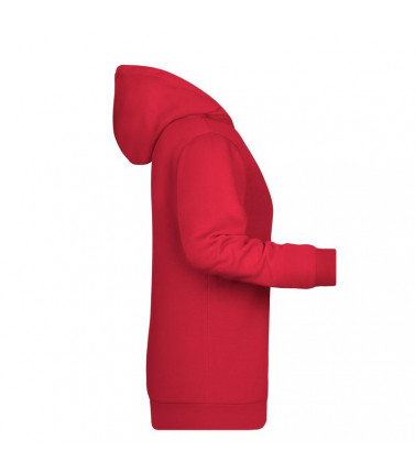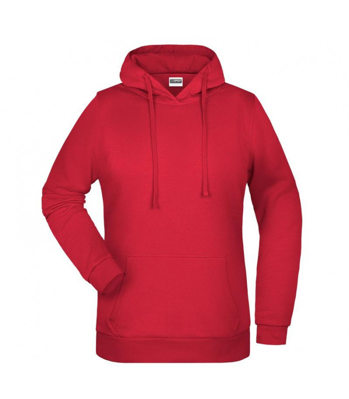 80% cotone, 20% poliestere. felpa da donna con rivestimento interno, cappuccio doppio strato con coulisse, tasca a canguro, necktape, bande nelle maniche in elastane, etichetta removibile, leggermente sfiancata.