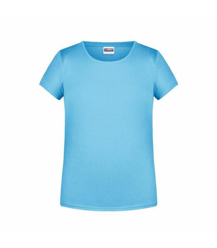 t shirt classica per ragazza. 100% cotone organico single jersey collo rotondo polsini con elastane leggermente avvitata tear off! etichetta removibile