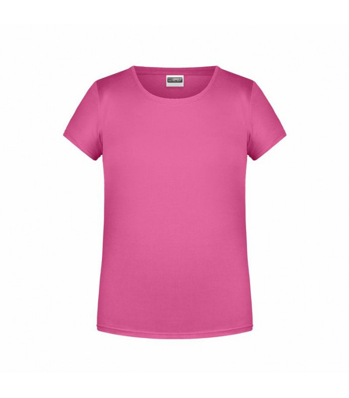 t shirt classica per ragazza. 100% cotone organico single jersey collo rotondo polsini con elastane leggermente avvitata tear off! etichetta removibile