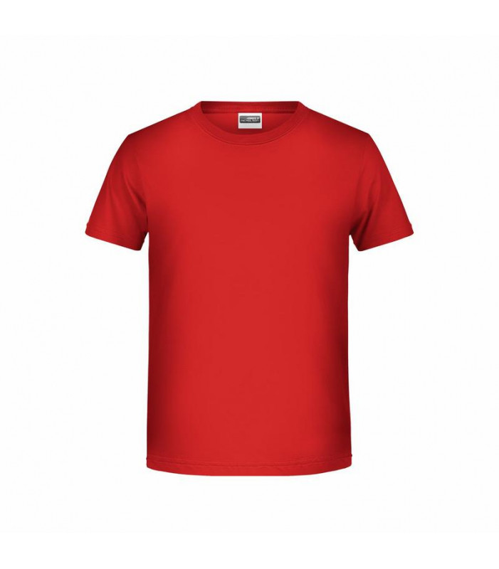 t shirt classica per ragazzo. 100% cotone organico single jersey, collo rotondo, polsini con elastane, tichetta removibile
