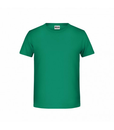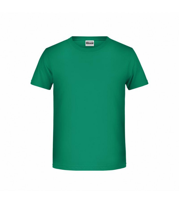 t shirt classica per ragazzo. 100% cotone organico single jersey, collo rotondo, polsini con elastane, tichetta removibile